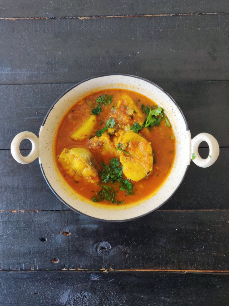 I made this recipe recently for a friend because we love fish and I was in the mood for some home style comfort. I asked our help at home the for recipe, she gave me a broad sense of how it is made and I took it from there. As I was cooking, I kept tasting to adjust the spices. It kept feeling more and more like home. Once the fish was ready and I tasted the final flavour, I swear I almost cried!