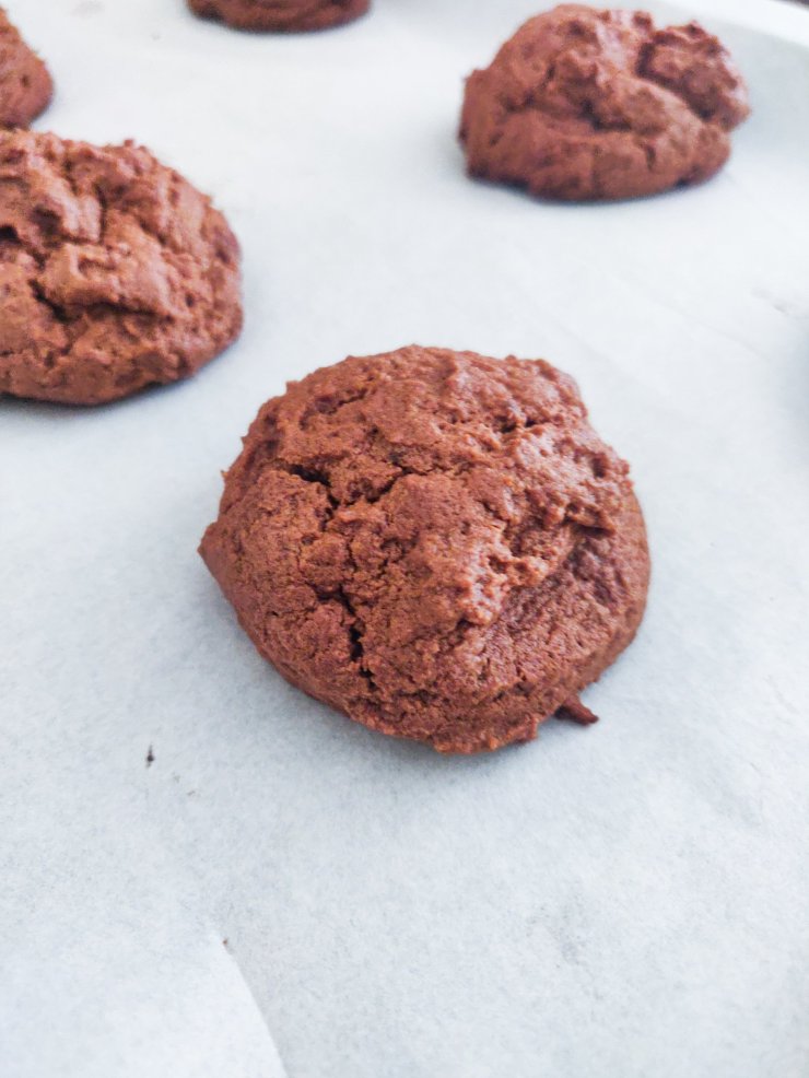 - Scoop 2-3 tbsp of batter into balls and drop on to the baking paper, with 2 inches gap between each (about 6 cookies per tray)