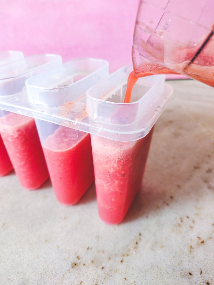 - Strain the juice and pour into popsicle moulds