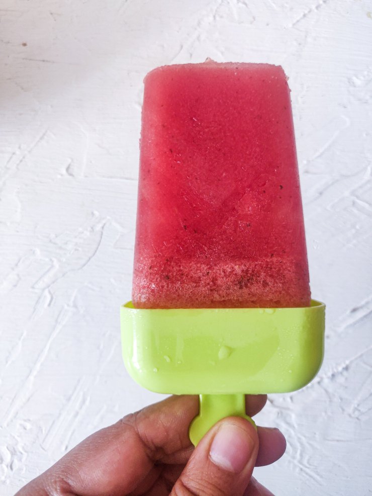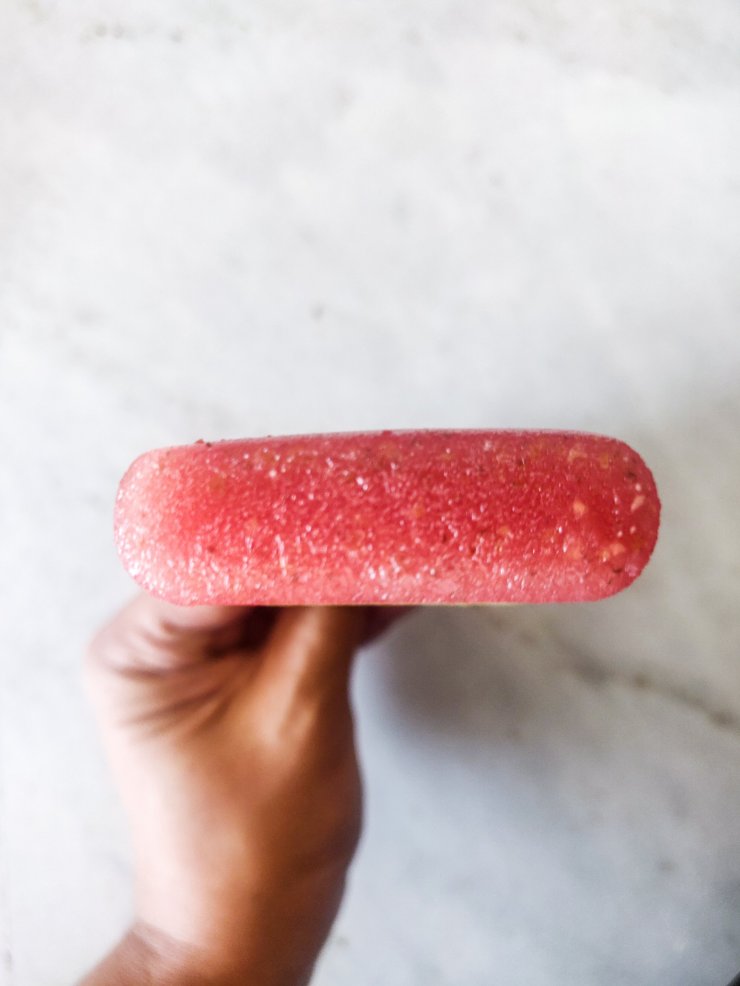 Growing up, we gorged on popsicles. Orange bar, cola bar, lemon bar – you name it. It was a treat we got on summer evenings after finishing home work and after playing in the park. I didn’t feel ready to remake those yet but got this idea to make a watermelon popsicle since the fruit is in season, is perfectly sweet and such a beautiful flavour.