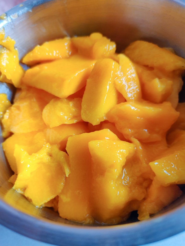 One of my favourite ways to eat mango ice cream is with fresh mangoes. Mango on mango! Double joy! Creamy ice cream with bursts of fresh fruit. YUMMMM!