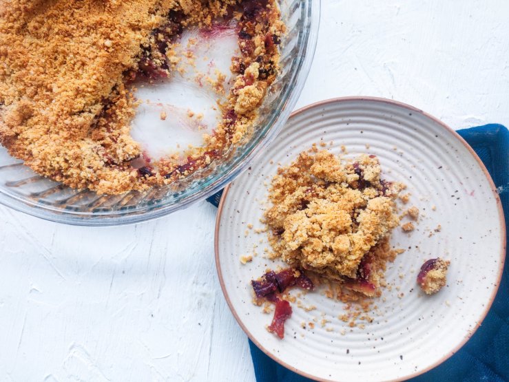 A crumble takes hardly any time to put together, which makes it an even more fun dish to experiment with. You can try different fruits and different additions to the crumb topping itself.