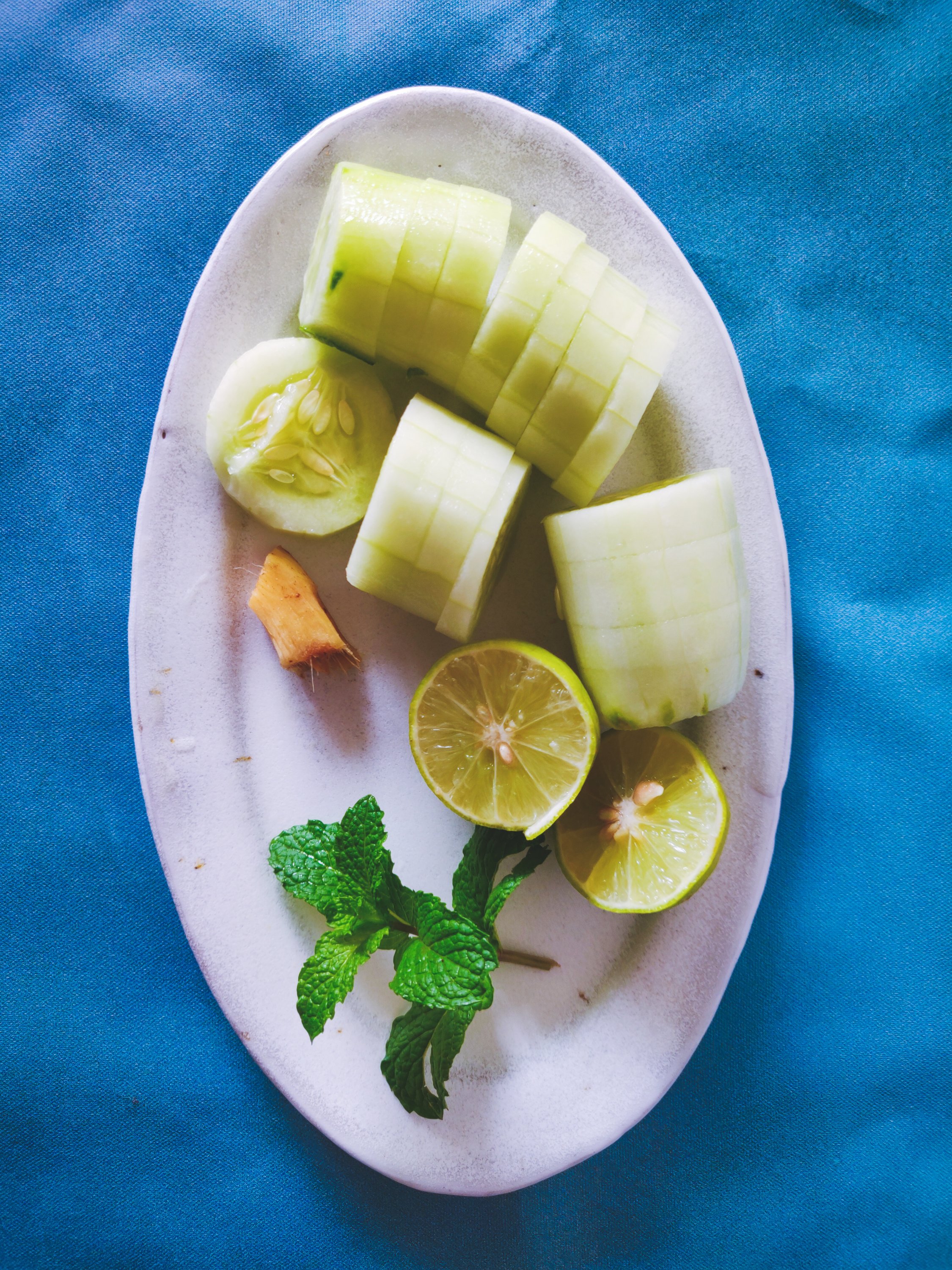 - Blitz the cucumber, ginger, mint leaves, salt, sugar and water till you get a smooth mix