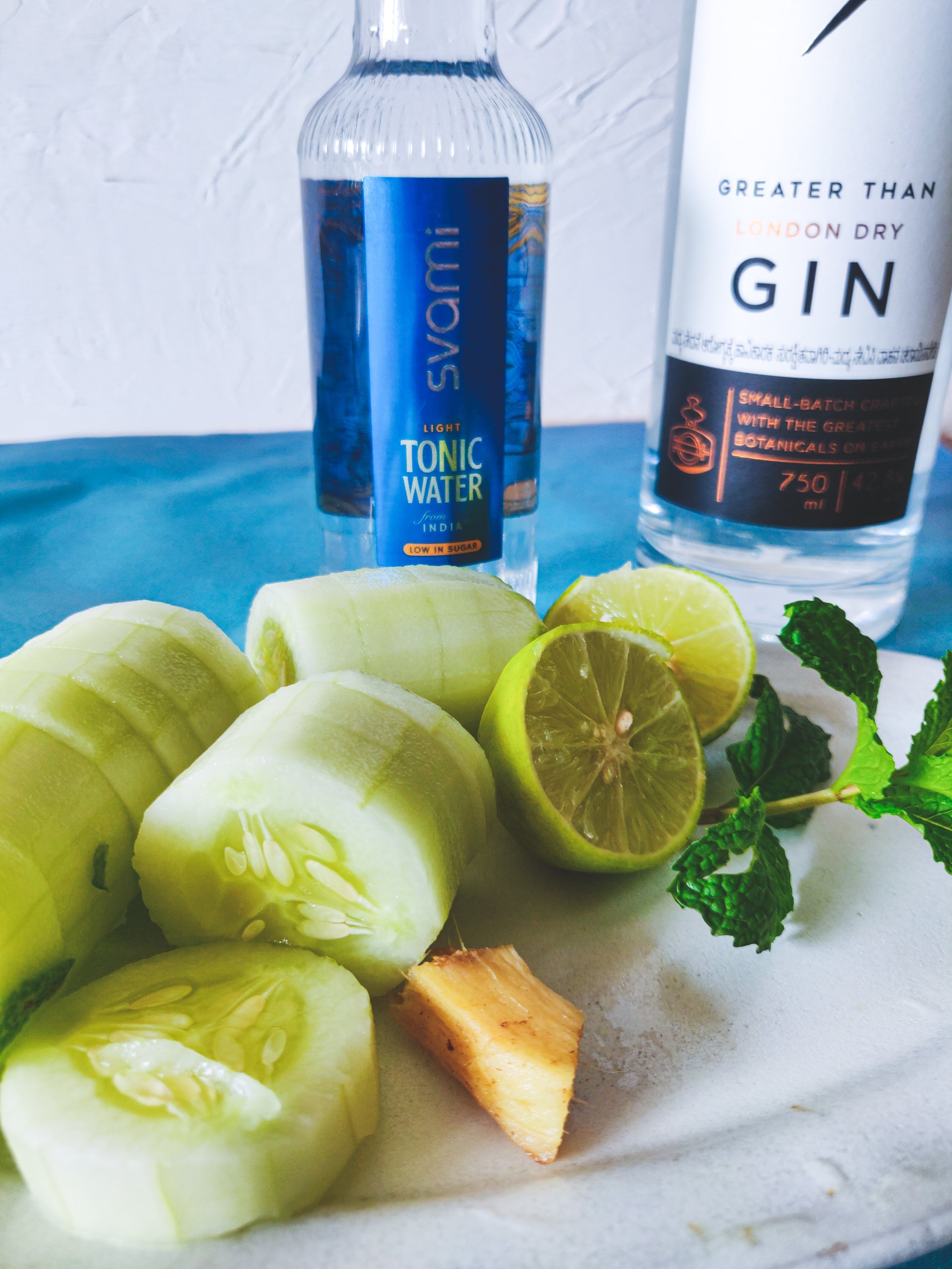 Cucumber is always light and refreshing, pairing well with the gin. To add a little more oomph and depth of flavour, I use some ginger and mint – a little hum of spice and a burst of fragrance and freshness.