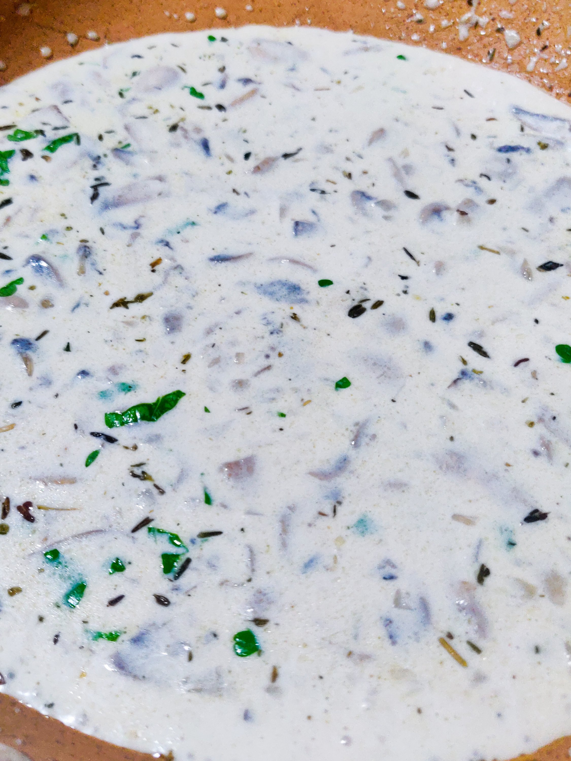 - Once you see it thickening after this time, add the cream and mix well. Continue to cook for another 2-3 minutes