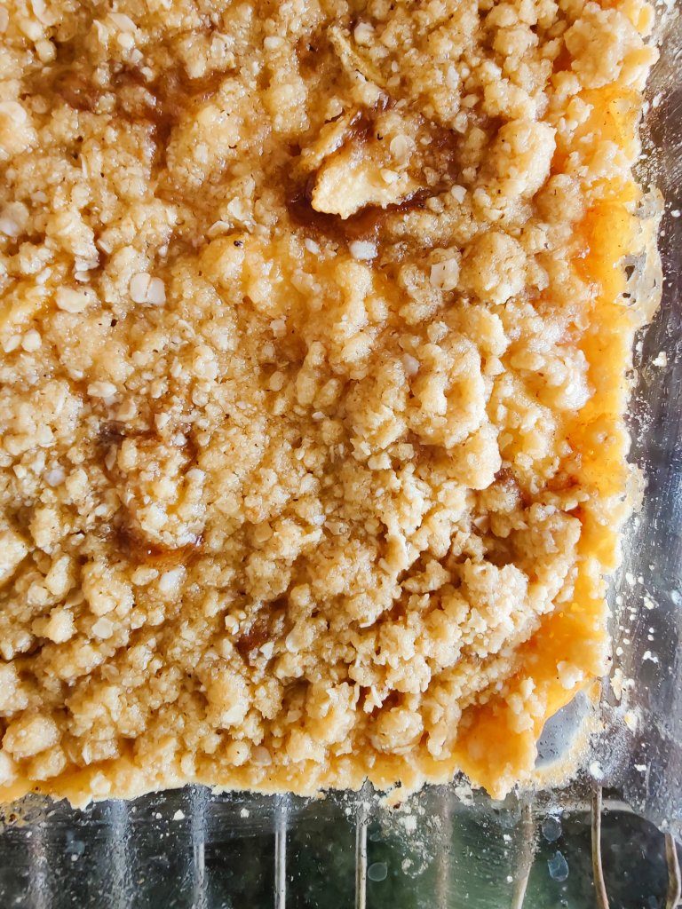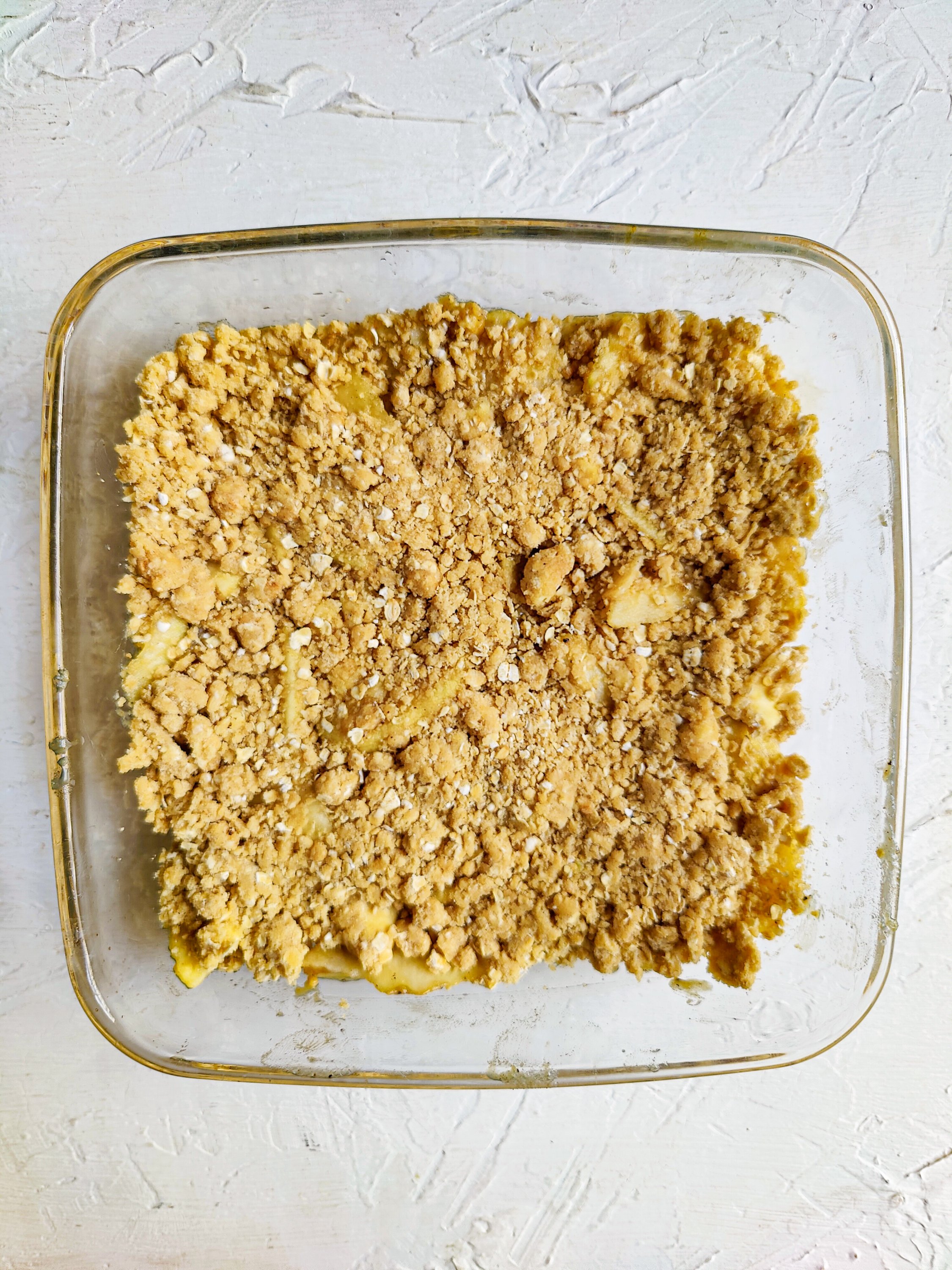 I add oats to the crumble dough to help with texture and taste, making for a nice mouthful when combined with those beautiful spiced apples.