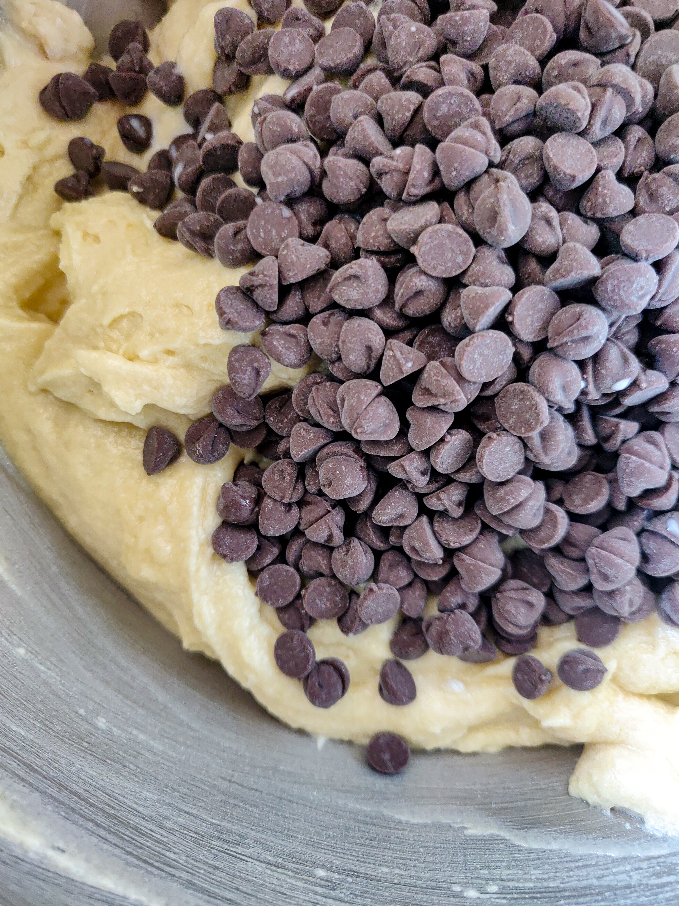 - Mix in the chocolate tips gently