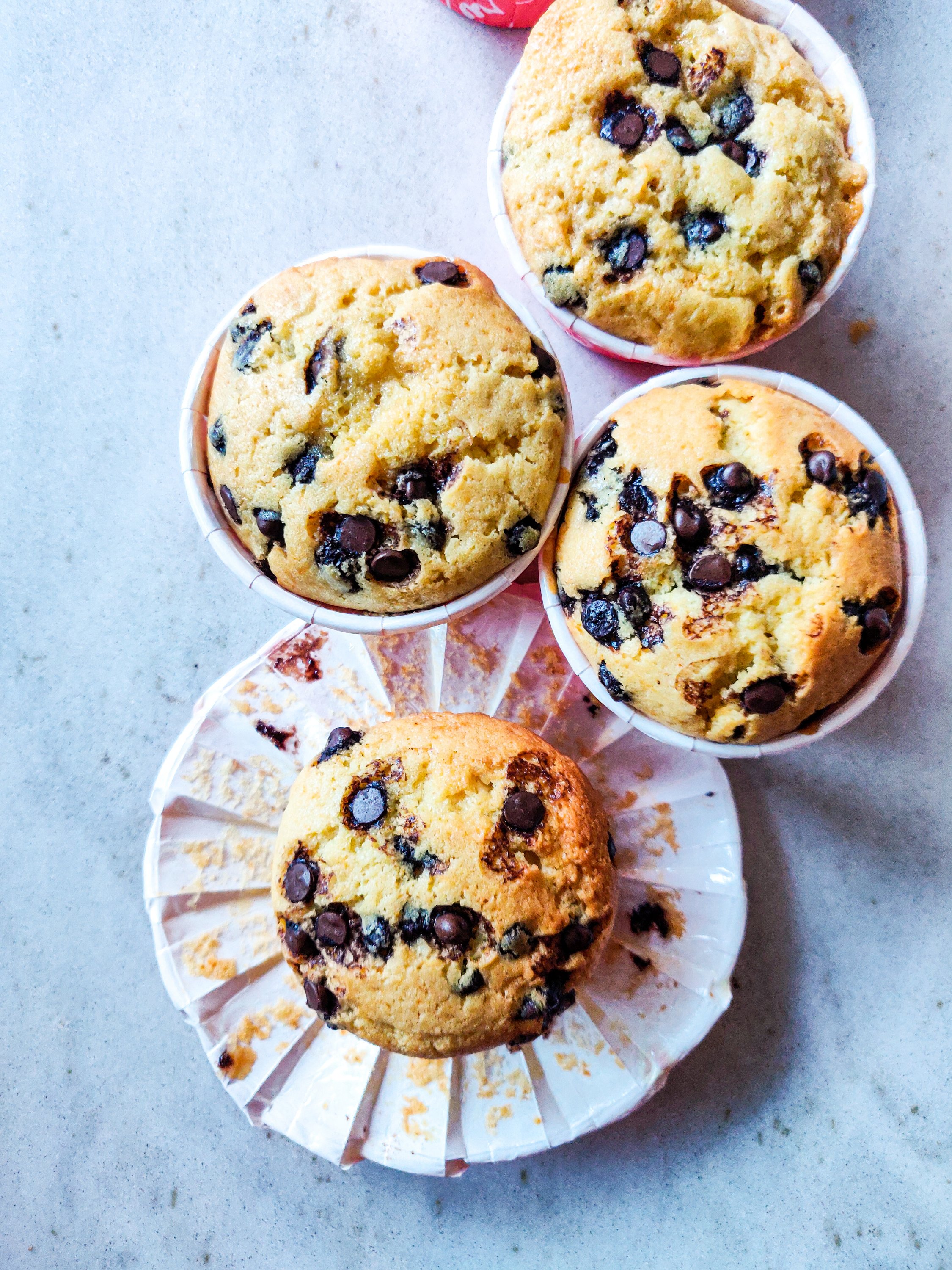 Whole wheat choco-chip muffins