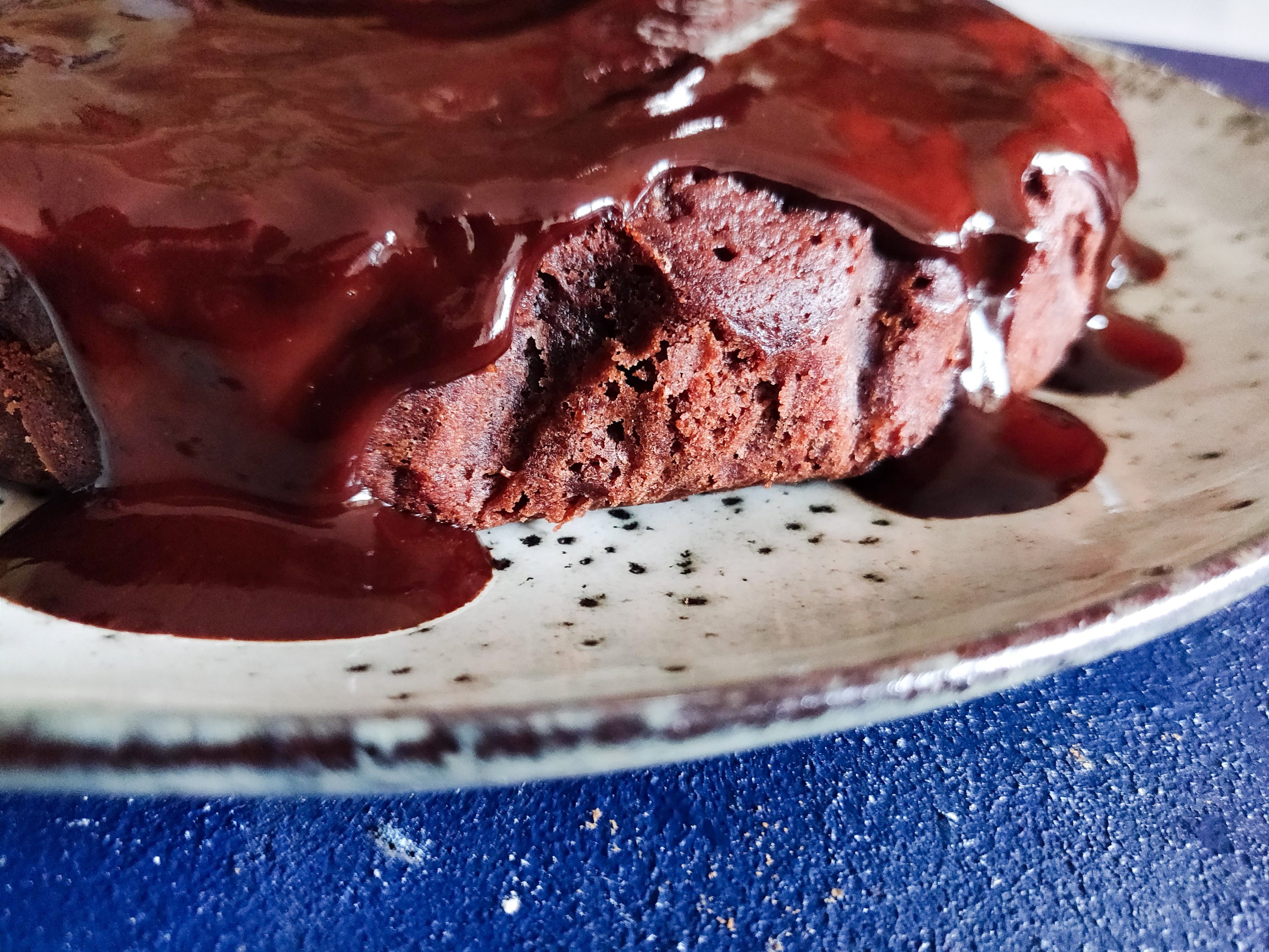 There is chocolate and red wine in the cake and also in the ganache. Double decadence!