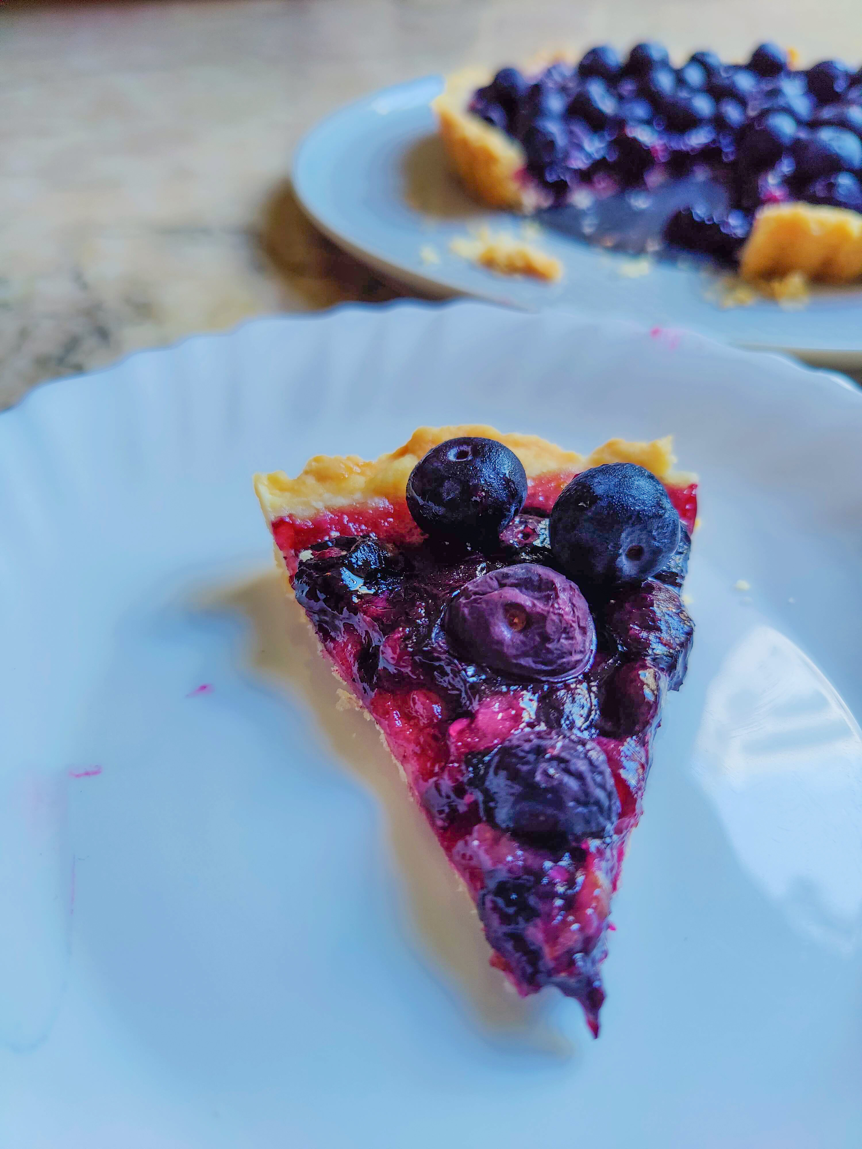 The blueberries are layered through the tart, adding more textures and flavours of the fruit in each bite.
