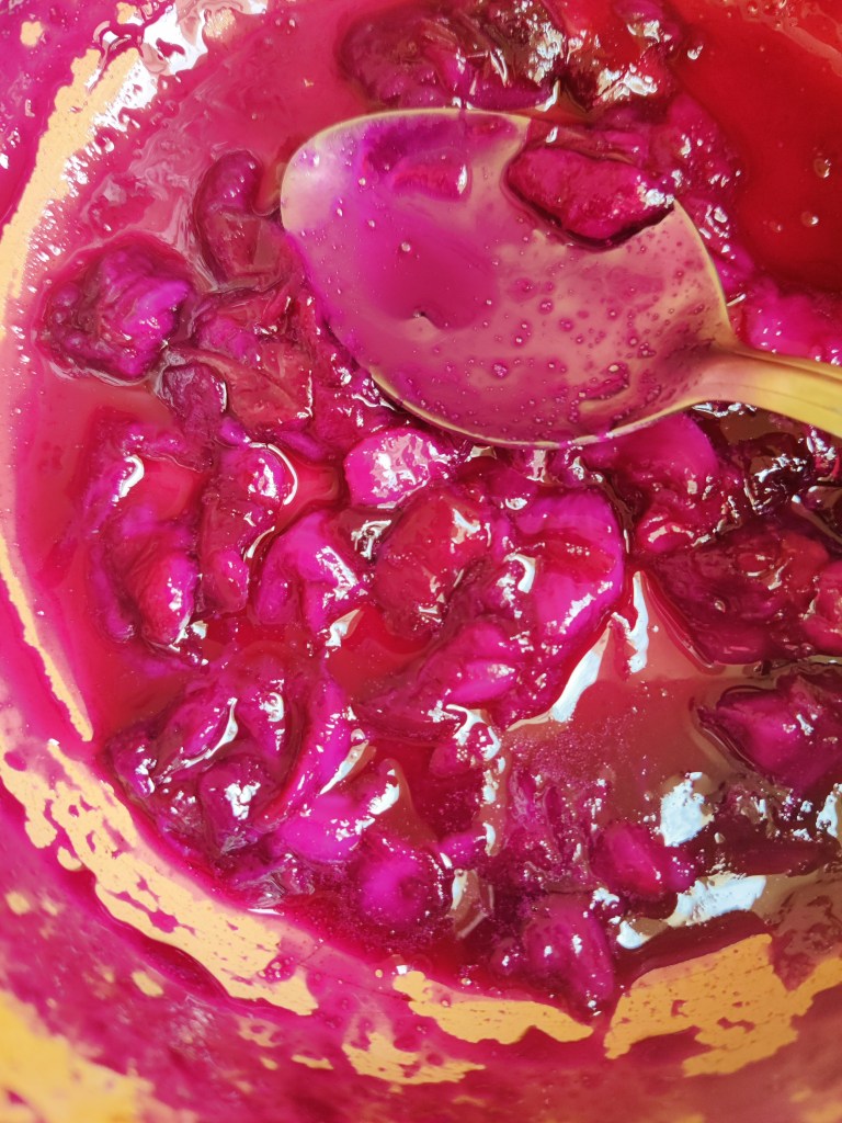 The compote is jammy, tangy, slightly sweet and sticky. It takes just ten minutes to cook down and then just slather it over a cool cake.