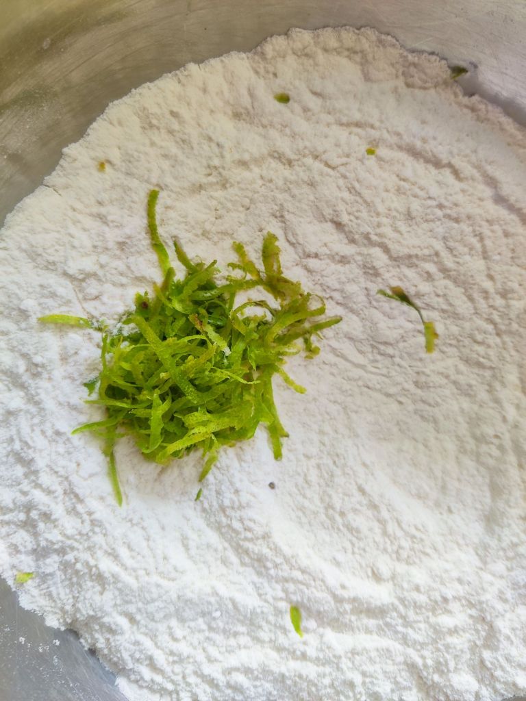 - In a bowl, mix the flour, salt, baking powder, baking soda and 1 tbsp lemon zest