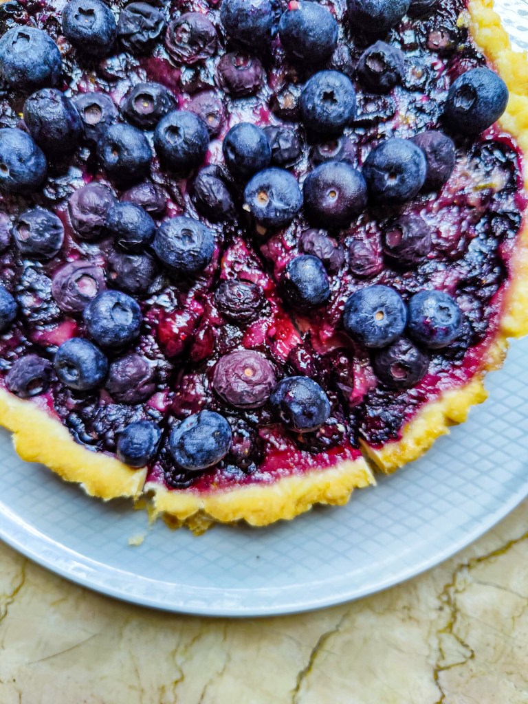 2022 has already started! How time flies! May this year be saner, safer and happier than ever before! Here’s to overcoming fears, finding your passion, spending more time with people you love and doing things that make you happy! For me, baking is definitely something I want to do more of and overcoming dough fears needs to find more place in my life 🙂 This blueberry tart is super easy though and is something that you must try!