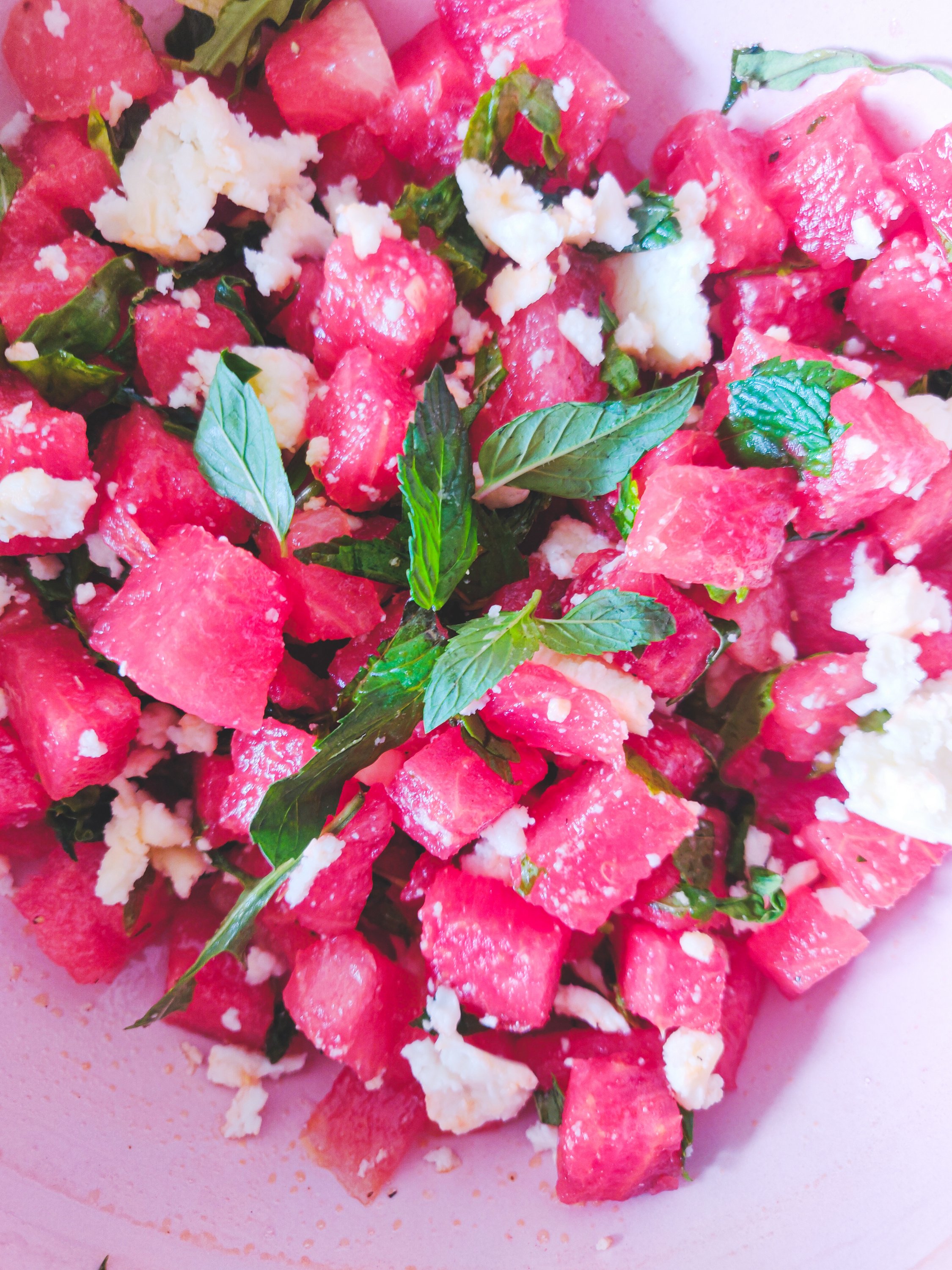 I love a good salad – fresh, textural and delicious. Not to mention, usually light and healthy too. Now there are salads that make you feel like you’ve eaten nothing at all and then there are those that are a good meal by themselves without being unhealthy. Salads are so versatile and give us so much room to experiment. One such early discovery was this one : Watermelon & feta salad. This was my first exposure to fruit and cheese together in a salad. I was hooked!